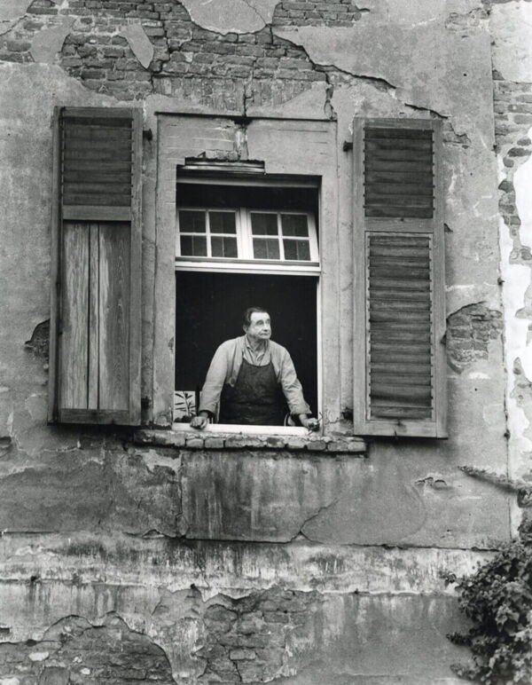 Die Fotografie von Fritz Getlinger (1911 - 1998) zeigt Hanns Lamers dort - aus dem Fenster schauend - im Jahr 1963 (MKK Inv.1994-01-03 / Nachlass Fritz Getlinger, Schenkung aus dem Nachlass des Künstlers).