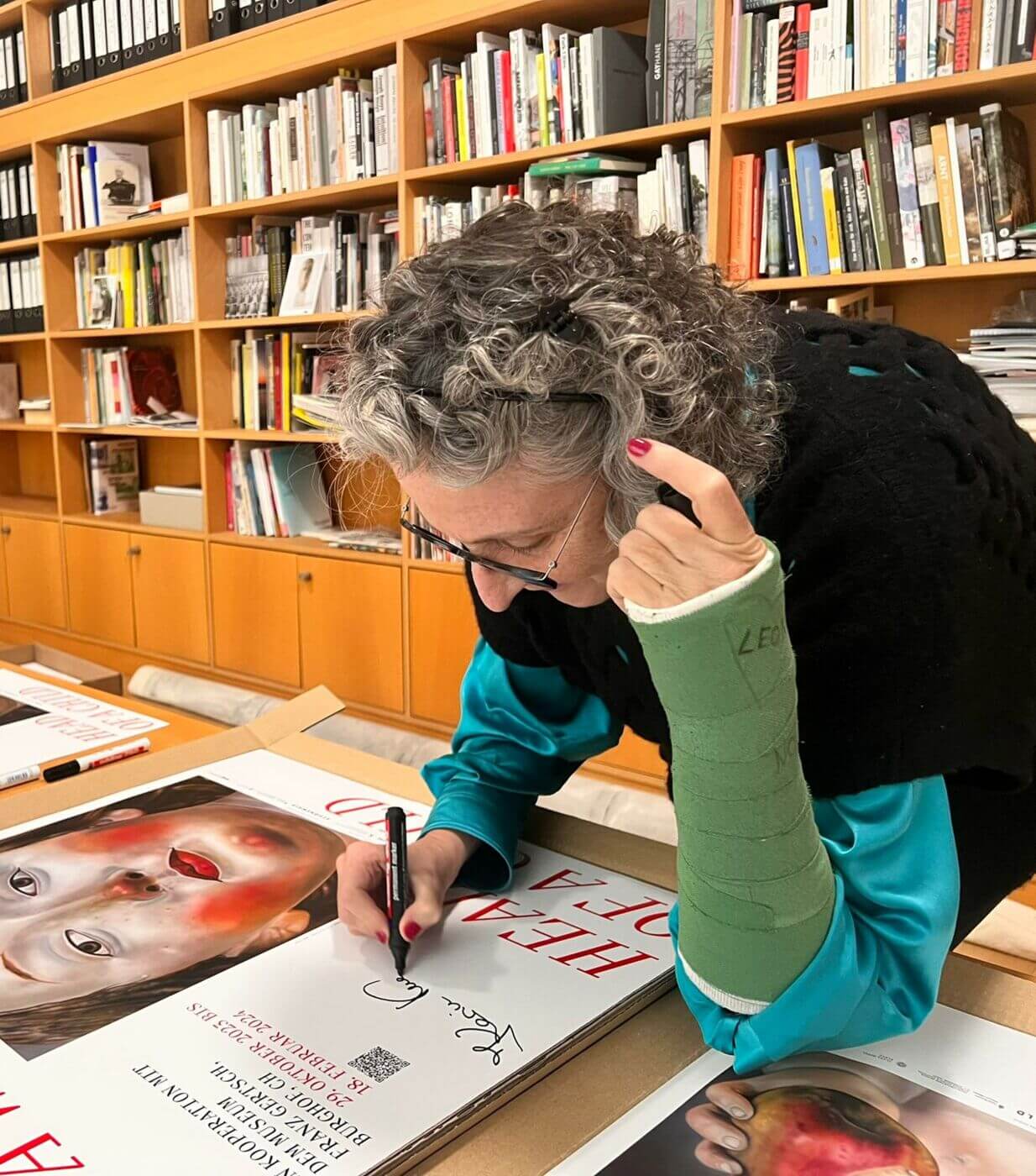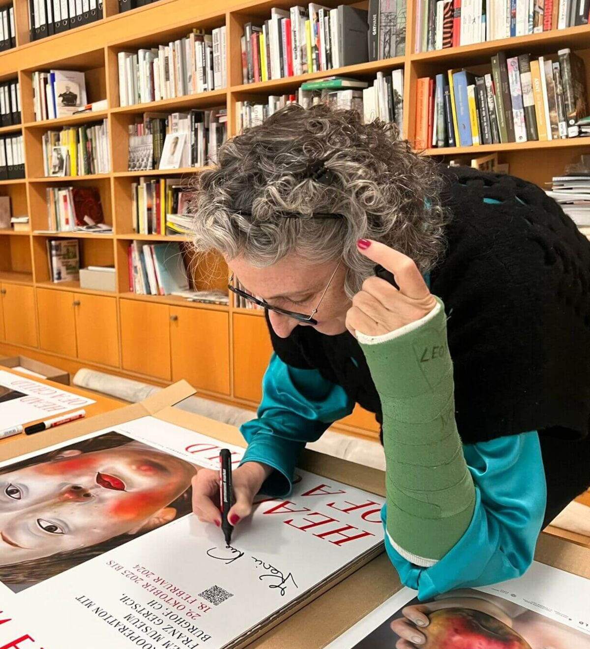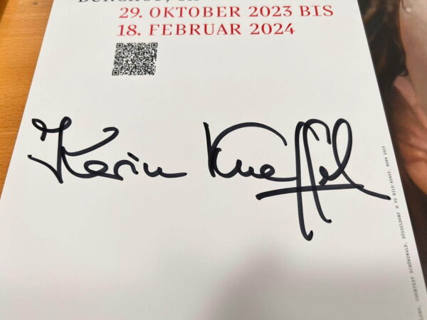 signierte in Vorbereitung der großen Ausstellung im Museum Kurhaus Kleve Plakate, die im Museum erworben werden können.