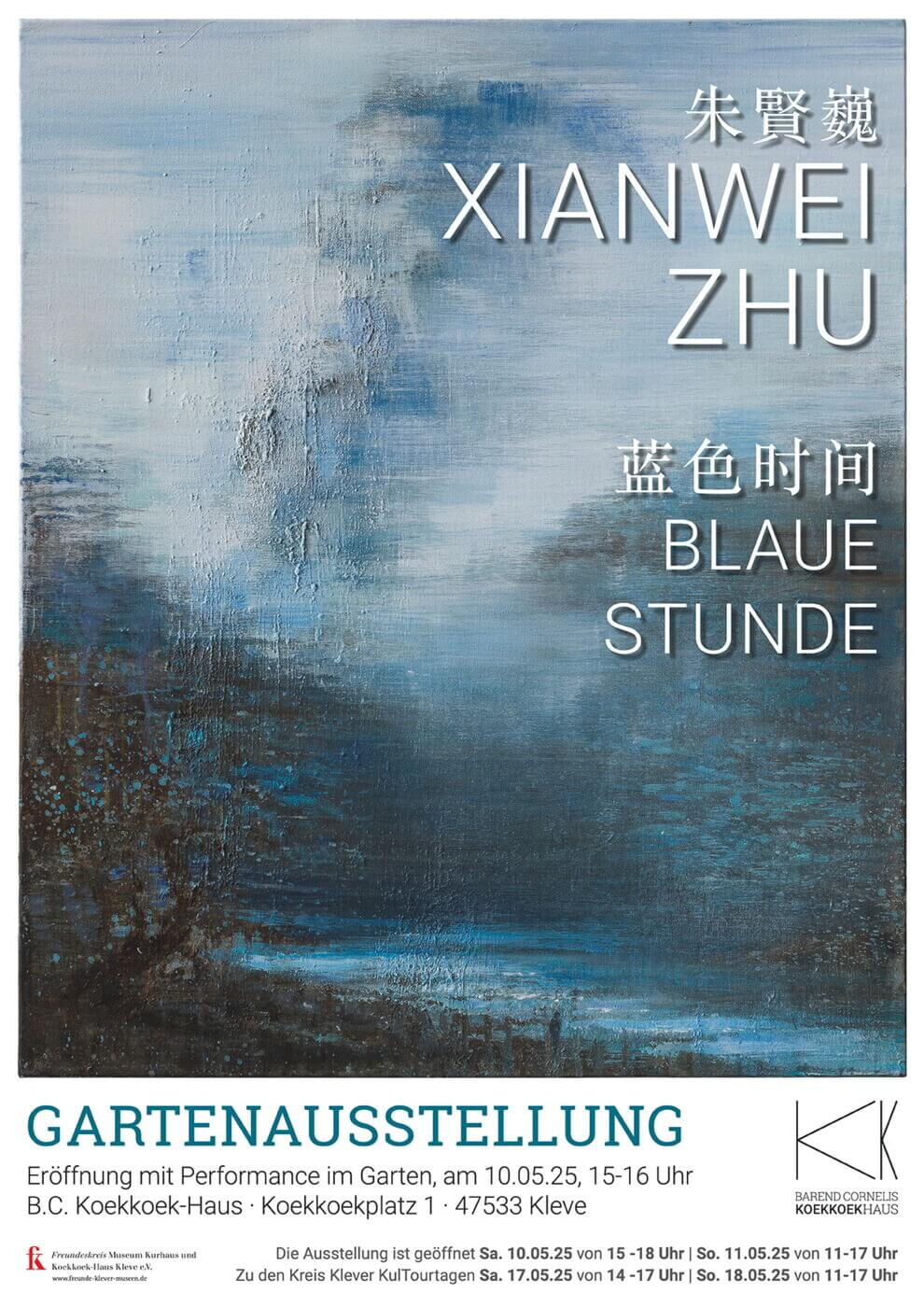 Am Samstag, den 10.05.2025, von 15 bis 16 Uhr ist die Eröffnungsveranstaltung der Ausstellung „Blaue Stunde“ des Künstlers Xianwei Zhu im Garten (nicht barrierefrei) des B.C. Koekkoek-Haus Kleve, organisiert durch den Freundeskreis der Klever Museen. Der Künstler ist anwesend und bietet wetterabhängig eine Malerei-Performance oder Führung an.