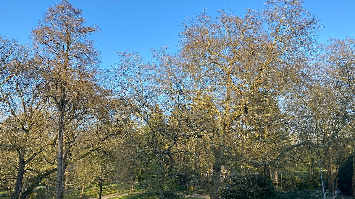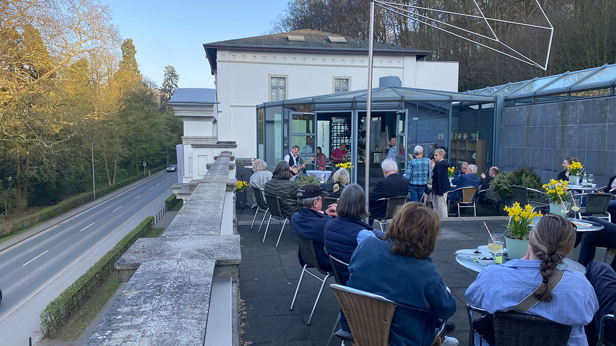 Bei frühlingshaftem Wetter wird auch die Dachterrasse geöffnet sein. Selbstverständlich bietet sich auch die Gelegenheit, die aktuelle Ausstellung zu besuchen.