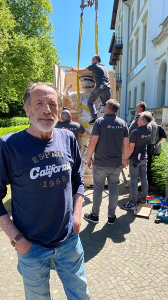 Als am 12.05.2025 die Skulptur der Pallas Athene aus dem Museum Kurhaus Kleve abgeholt wurde, war Norbert van Elten als Zuschauer dabei.