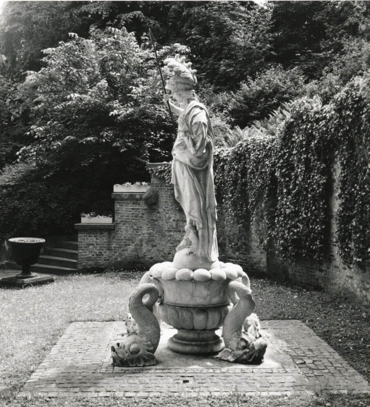 Pallas Athene / Minerva, die Artus Quellinus im Auftrag der Stadt Amsterdam fertigte, wurde von der Stadt Amsterdam dem brandenburgischen Statthalter in Kleve, Johann Moritz von Nassau-Siegen, als Brunnenfigur für seine Gärten geschenkt.