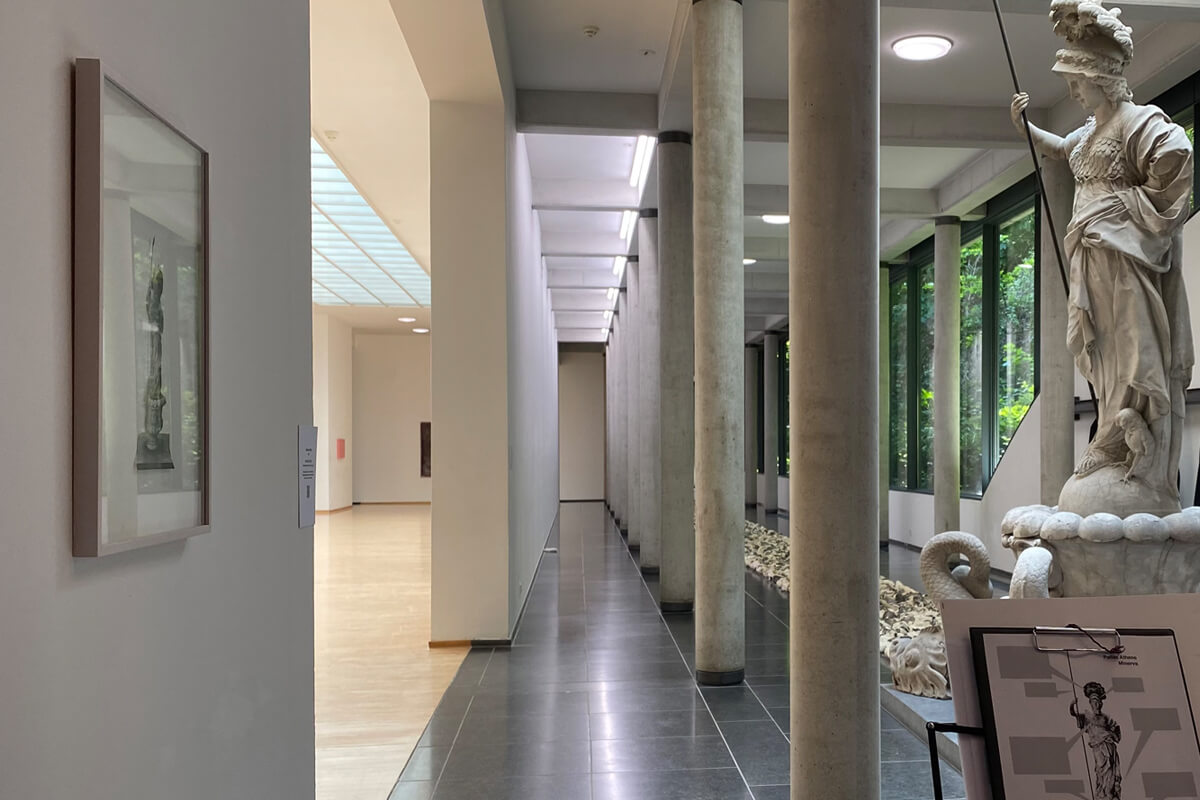 Johannes Wald hat sich intensiv mit der antiken griechischen Skulptur auseinandergesetzt. Während seiner Ausstellung im Museum Kurhaus Kleve entstand diese Aktion und die daraus entwickelte Edition. Sie zeigt die verhüllte Skulptur der Göttin Minerva, deren Delphine Johannes Wald für diese Verhüllung hatte entfernen lassen.