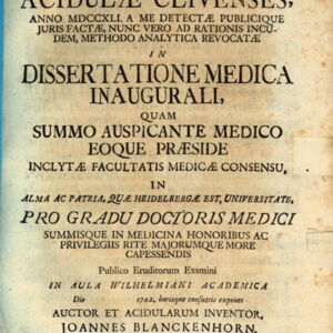 Das erste Buch beschreibt die Entdeckung der Mineralquelle durch Johannes Blanckenhorn, das zweite ist seine lateinisch geschriebene Doktorarbeit über die Klever Minerralquelle aus 1742.