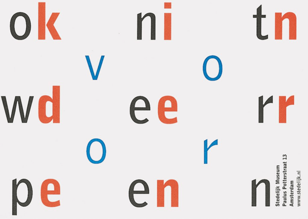 Er ist spezialisiert auf die Wirkung von Buchstaben, Wort-Layout und Text-Design. Walter Nikkels hat z.B. das Plakat entworfen: Deutlich lesbare Buchstaben sind so angeordnet, dass sie den Wortinhalt (in Niederländisch) verstecken und gleichzeitig neugierig machen, das Plakat zu entschlüsseln.