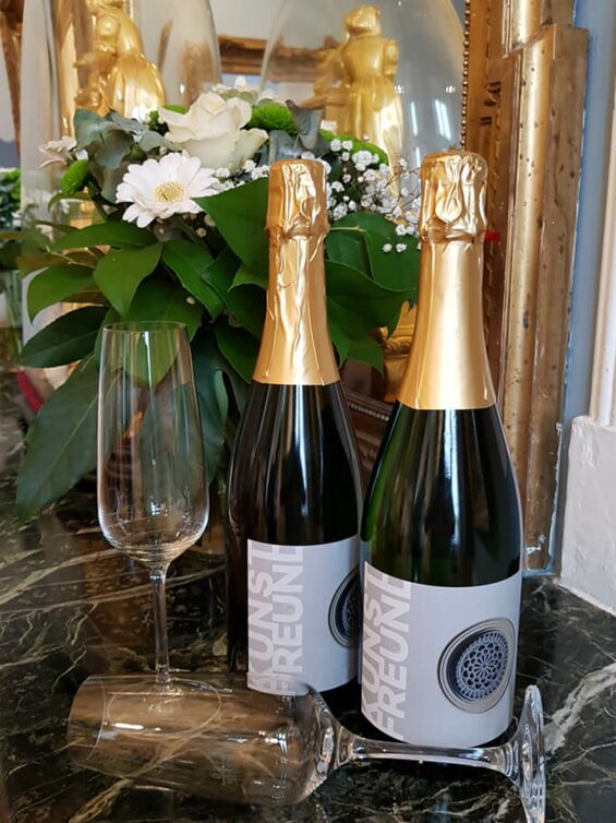Unsere Sekt-Edition 2020. Der Sekt, eine Cuvée aus handverlesenen Riesling- und Müller-Thurgau-Trauben, garantiert sowohl Klasse als auch frischen Trinkfluss. Vom renommierten Weingut Schwörer aus Durbach in Baden (zwei Trauben im Gault Millau) wurde diese Sektcuvée traditionell in der Einzelflasche vergoren, im Weingut handgerüttelt und ganz frisch im Oktober 2020 degorgiert. Die Flasche wurde selbstverständlich wieder mit dem einzigartigem Kunstfreund-Etikett und einer Goldkapsel veredelt. Wir waren überwältigt von der Nachfrage der Kunstfreunde.