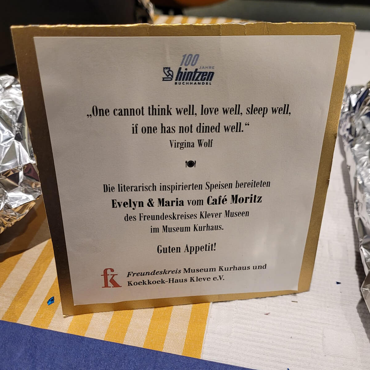 Nach Absprache mit dem Team des Café Moritz können kulinarischen Kleinigkeiten auch für Veranstaltungen außerhalb des Museum Kurhaus Kleve vorbereitet werden.