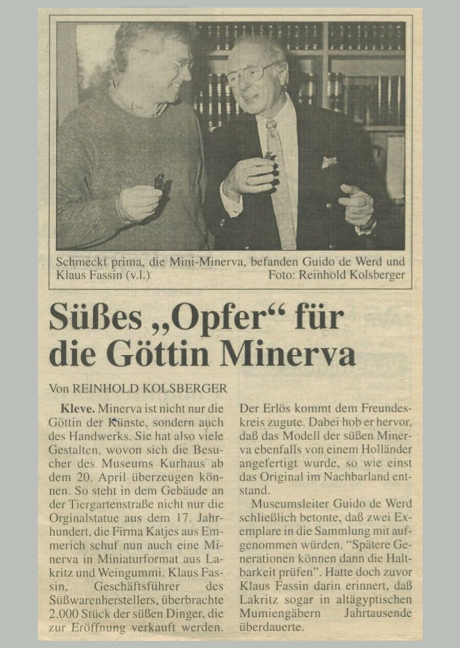 - 1997-04-05 PresseSpiegel: Süßes "Opfer" für die Göttin Minerva (Kurier am Sonntag)