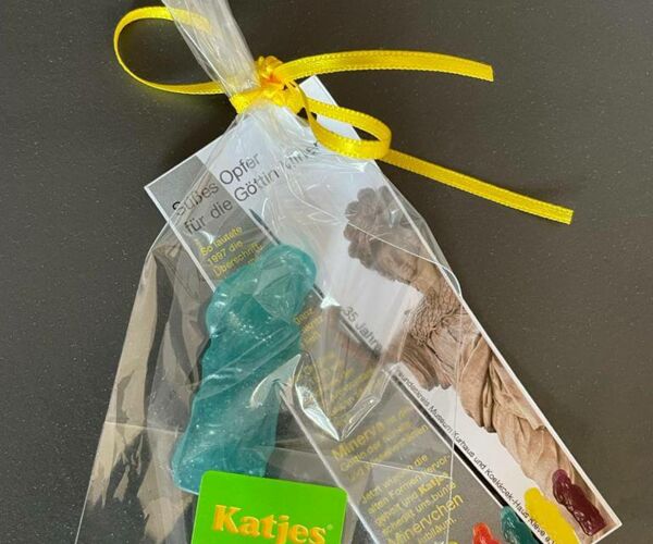 Wie zur Eröffnung des MKK vor 25 Jahren gab es ein Süßes Opfer für die Göttin Minerva, ein Minervchen aus Lakritz (Dank an die Emmericher Firma Katjes).