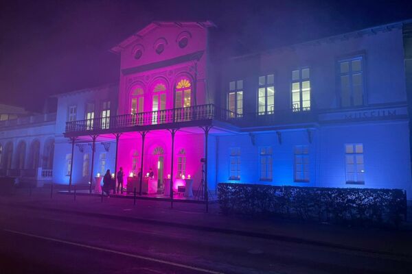 Der Tag endete mit der Sektbar vor dem blau illuminierten MKK während des Klever Lichterfestes.