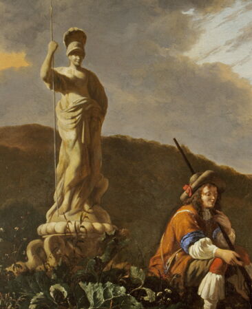 Dem Eisernen Mann gegenüber platzierte Johann Moritz sieben Jahre später Minerva, die als Göttin der Kunst und Wissenschaften galt. Er setzte so ein Zeichen für den soeten vreed / süßen Frieden, in dem Kunst und Wissenschaften das Leben prägen.