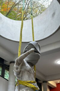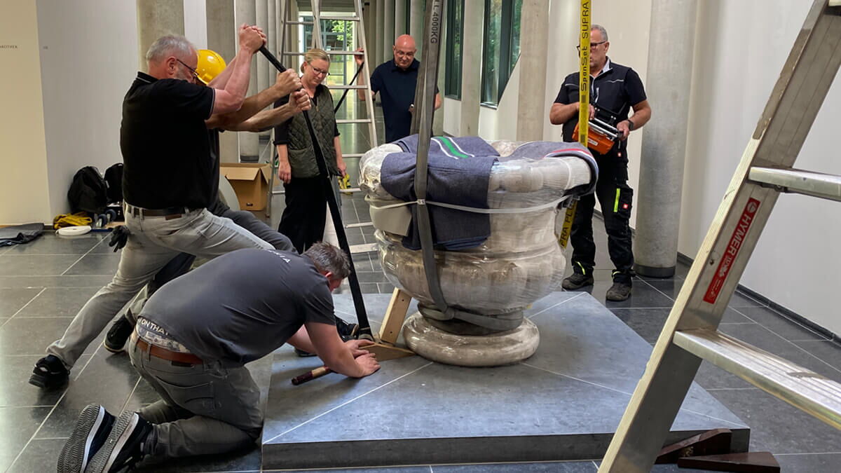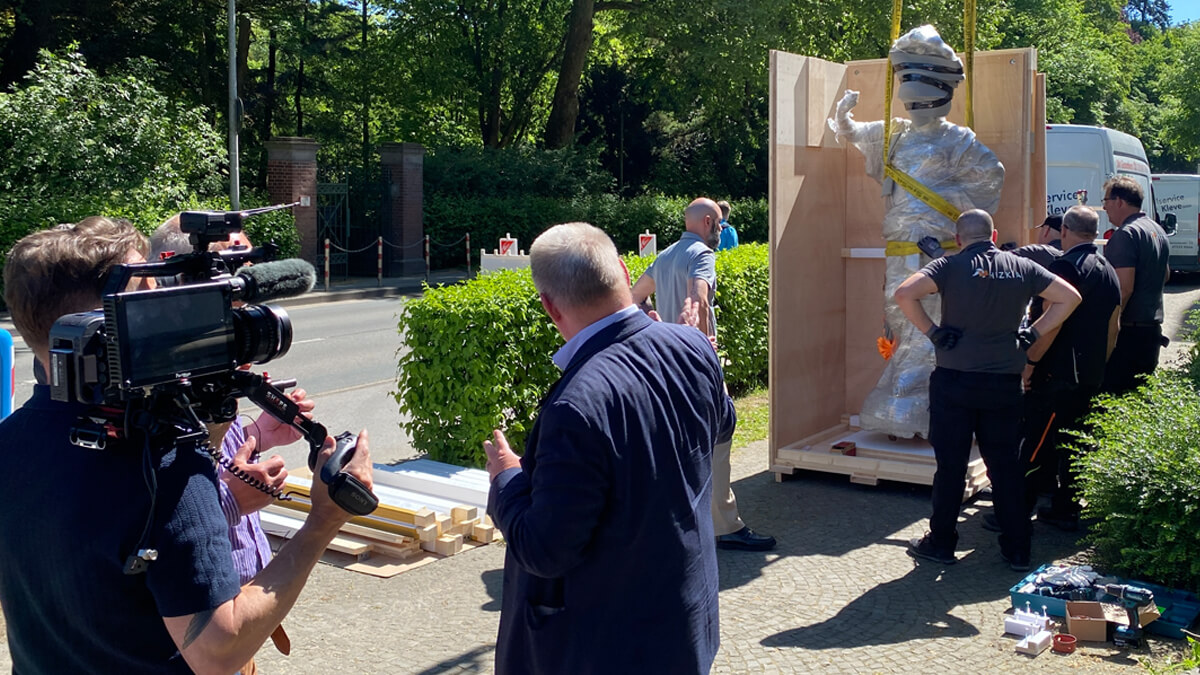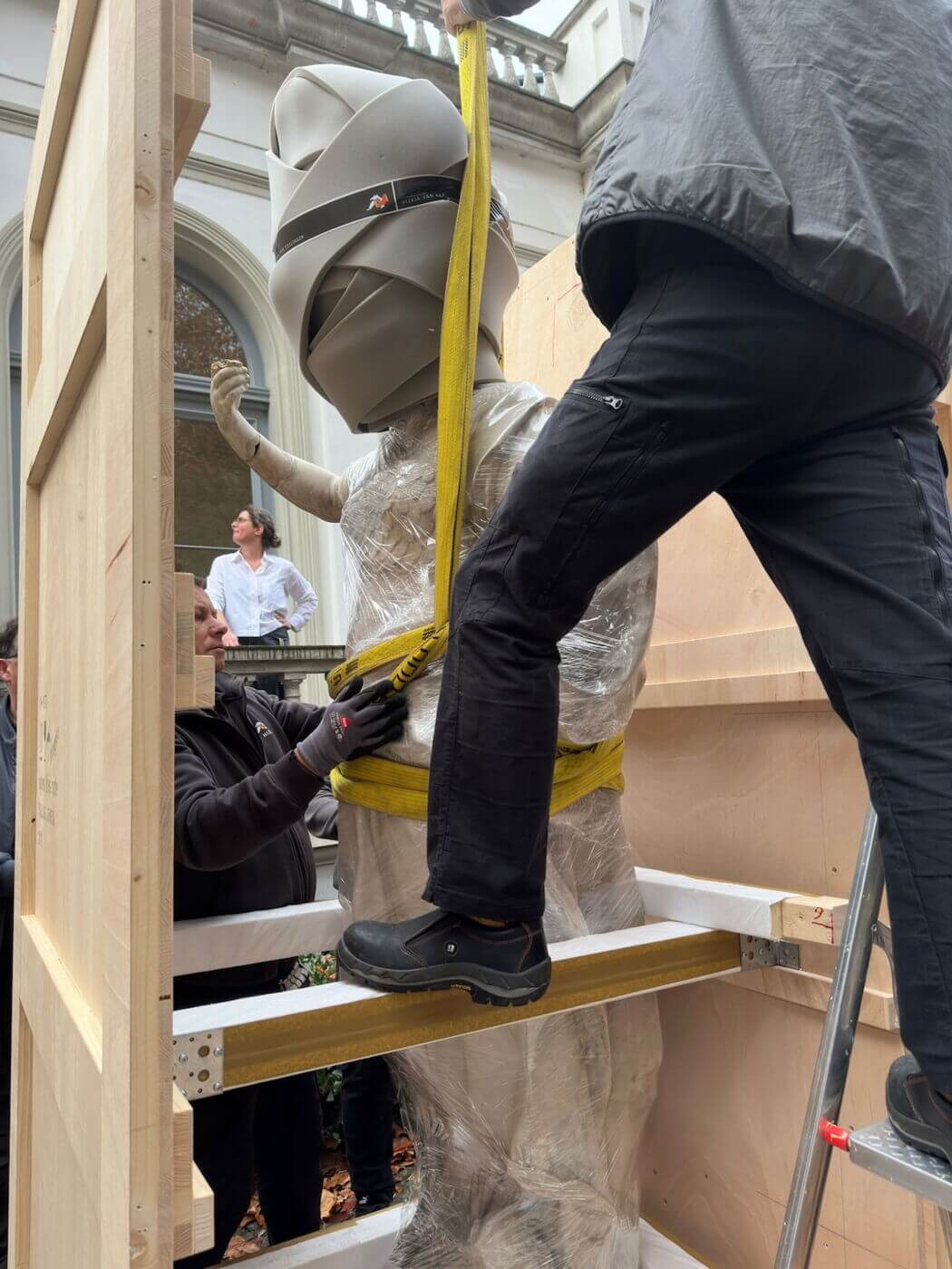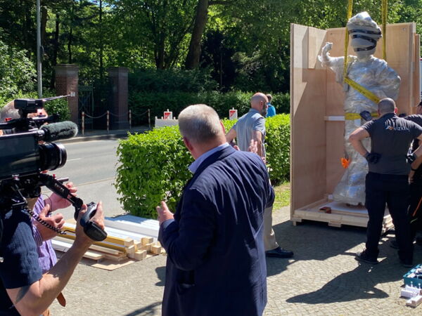 Als am 12.05.2025 die Skulptur der Pallas Athene aus dem Museum Kurhaus Kleve abgeholt wurde, war Norbert van Elten als Zuschauer dabei.