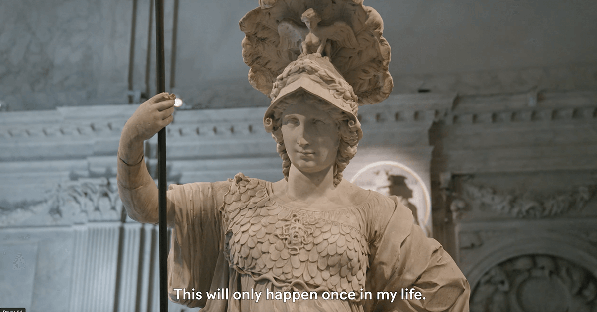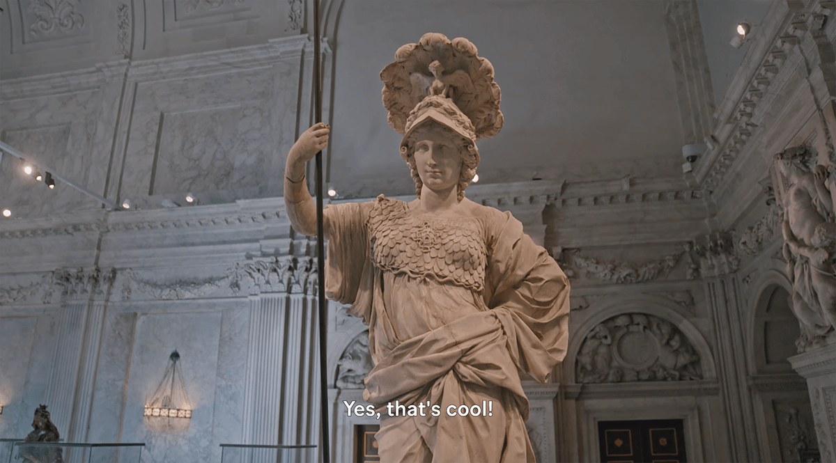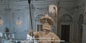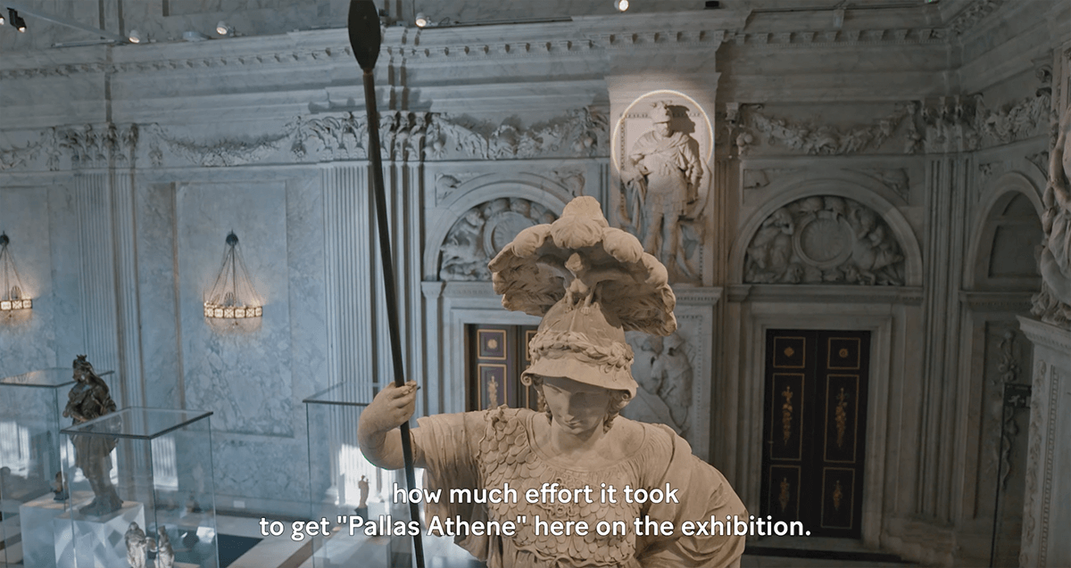Im Film zur Ausstellungen beschreiben die Kuratorinnen die Großartigkeit der Klever Pallas Athene und den Aufwand, diese barocke Skulptur für die Ausstellung nach Amsterdam kommen zu lassen: Mit einem Kran wurde die eine Tonne schwere Pallas Athene durch das Dach aus dem Museum Kurhaus gehoben, per Kunstspedition nach Amsterdam gebracht und dort wiederum mit Kran über das Dach in den Innenhof des Palastes gehoben, um dann durch ein Fenster "liegend" in den Bürgersaal gebracht zu werden.