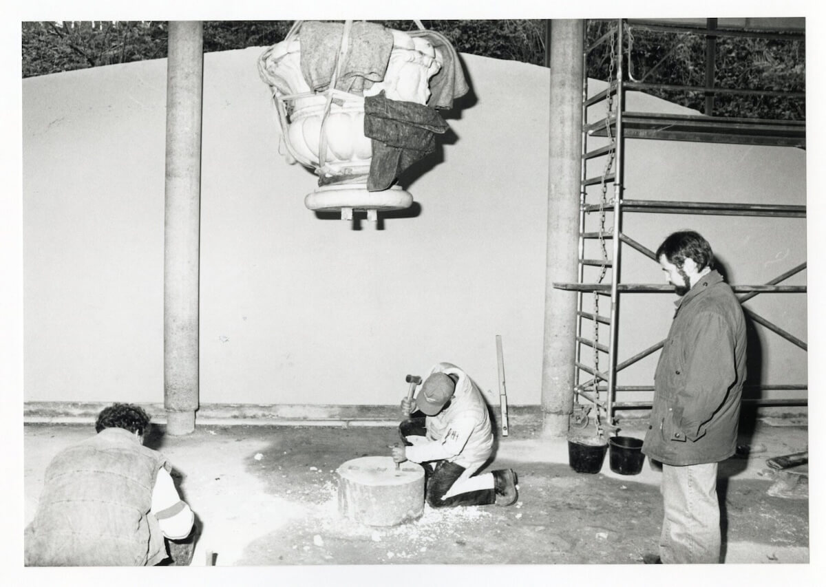 50 Jahre zuvor hat er während seiner Lehrzeit als Steinmetz die von Artus Quellinus 1660 gestaltete Skulptur der Pallas Athene ohne Kran, aber mit dem gesamten Werkstatt-Team von Steinmetz Hölker am Amphitheater abgebaut und per LKW zu einem Betrieb gebracht, der einen Abguss der Göttin machen sollte.