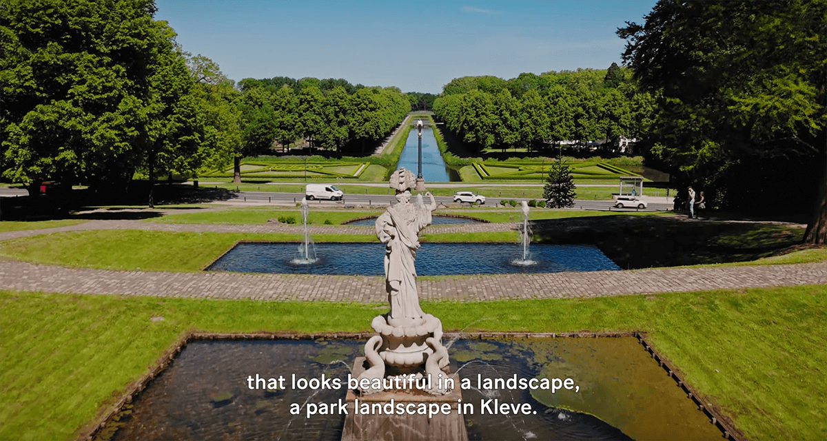 Seitdem bildet diese Skulptur der Pallas Athene oder Minerva, wie sie auch genannt wurde, einen zentralen Punkt der barocken Gartenanlagen. Diesen Ort verließ sie zweimal, um als Botschafterin Kleves nach Amsterdam zu reisen.