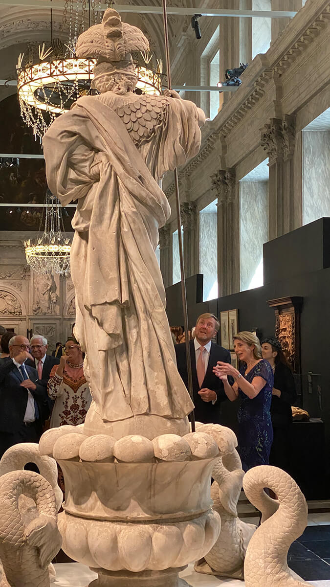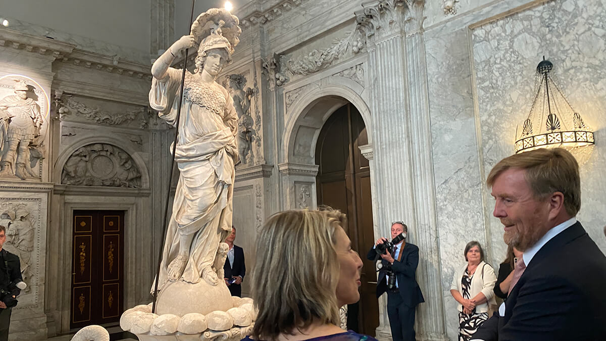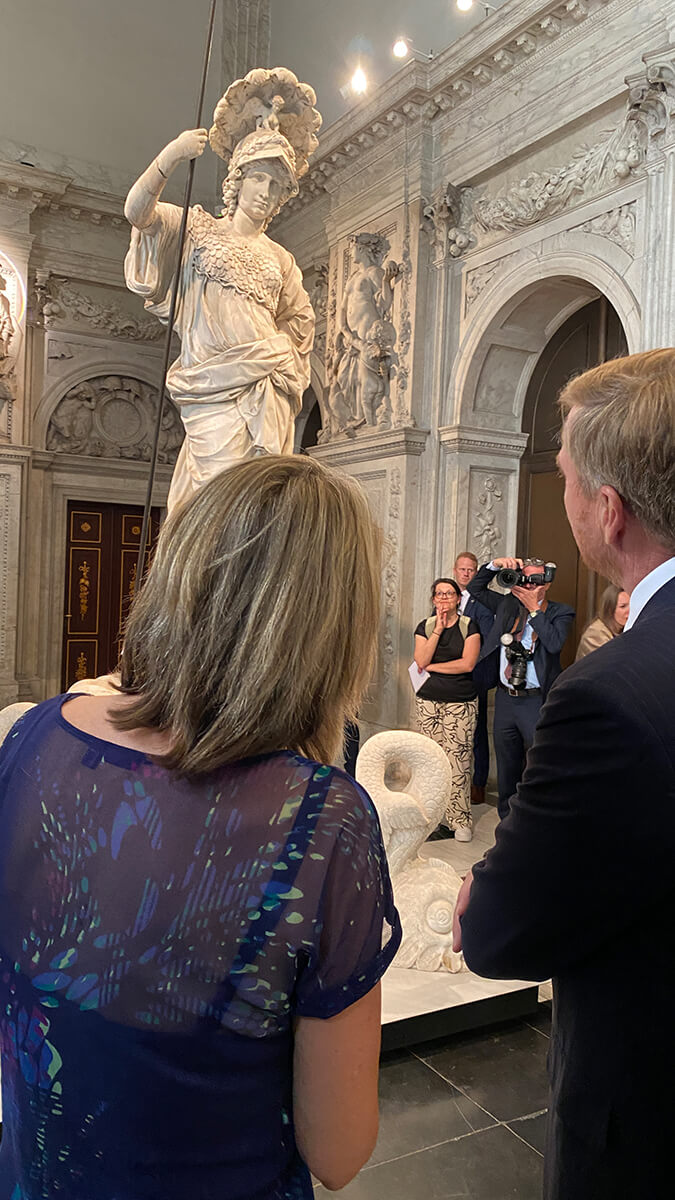 Zum 750-jährigen Jubiläum der Stadt Amsterdam, deren Stadhuis (heute: Koninklijk Paleis) Artus Quellinus im 17.Jahrhundert gestaltete, wurde am 17.06.2025 die Ausstellung mit der Klever Pallas Athene, einem Meisterwerk des Bildhauers, durch den König eröffnet.