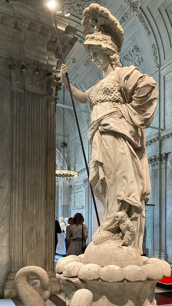 Seitdem bildet diese Skulptur der Pallas Athene oder Minerva, wie sie auch genannt wurde, einen zentralen Punkt der barocken Gartenanlagen.