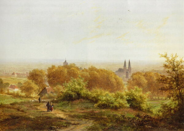 Mit Hilfe der Kulturstiftung der Länder konnte dieses eindrucksvolle Bild von B.C. Koekkoek auf einer Auktion in Amsterdam erworben werden. Zwei Wanderer blicken auf die Stadt Kleve: Unterstadtkirche, Koekkoeks Belvedere, die Schwanenburg und die Turmspitzen der Stiftskirche sind im Morgendunst zu erkennen.