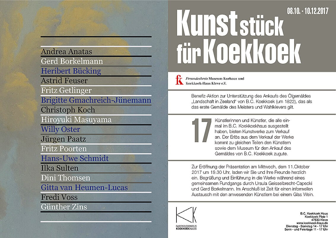 Mit dem B.C. Koekkoek-Haus verbundene Künstler initiierten eine Spendenaktion, um durch den Verkauf ihrer künstlerischen Arbeiten ein für die Sammlung des Hauses bedeutsames Bild von B.C.Koekkoek erwerben zu können.