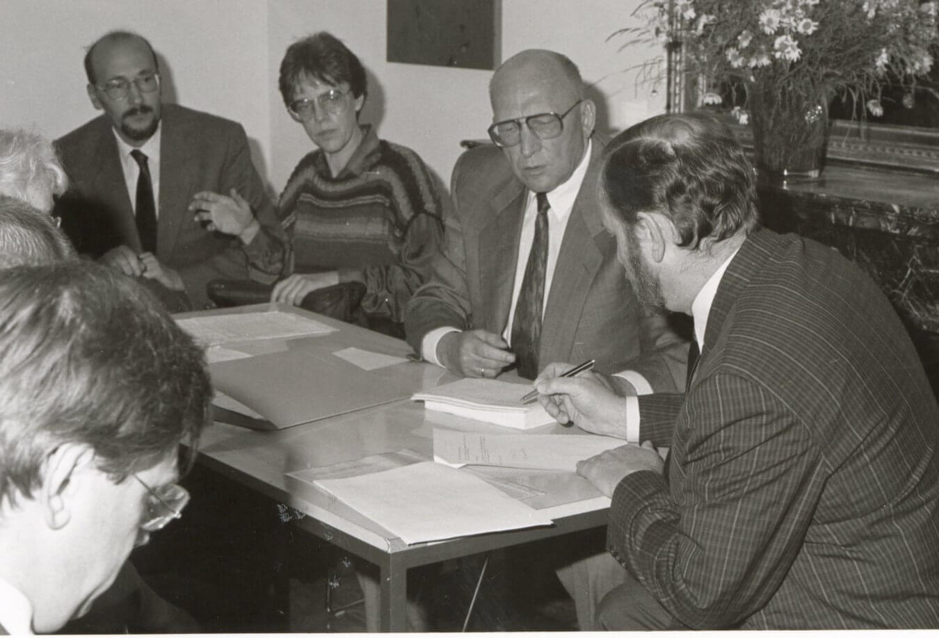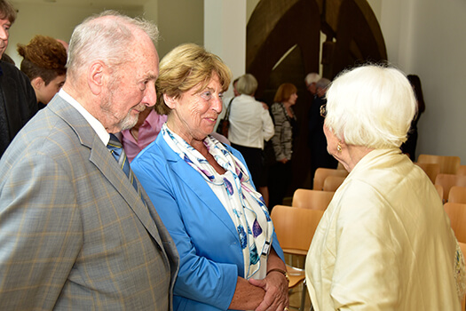 | Wilhelm Diedenhofen (rechts) bei der Gründungsversammlung des Freundeskreises der Klever Museen 1987 (Foto: A. Gossens) | Wilhelm Diedenhofen mit seiner Ehefrau Maria Diedenhofen beim Empfang zum Geburtstag von Sonja Mataré (rechts im Bild) im Museum Kurhaus Kleve in 2016 (Foto: A. Gossens) |