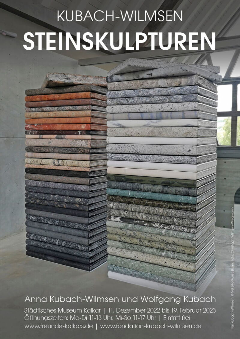 Wer kennt Sie die nicht, die Bücher aus Stein aus dem Atelier Kubach-Wilmsen, Bad Kreuznach? Nun wird im Museum Kalkar in das Werk von Anna Kubach-Wilmsen (gebürtig aus Kalkar) und Wolfgang Kubach mit einer Ausstellung eingeführt. Die Arbeiten des Künstlerpaares wurden weltweit angekauft, finden sich aber auch im öffentlichen Raum hier am Niederrhein.