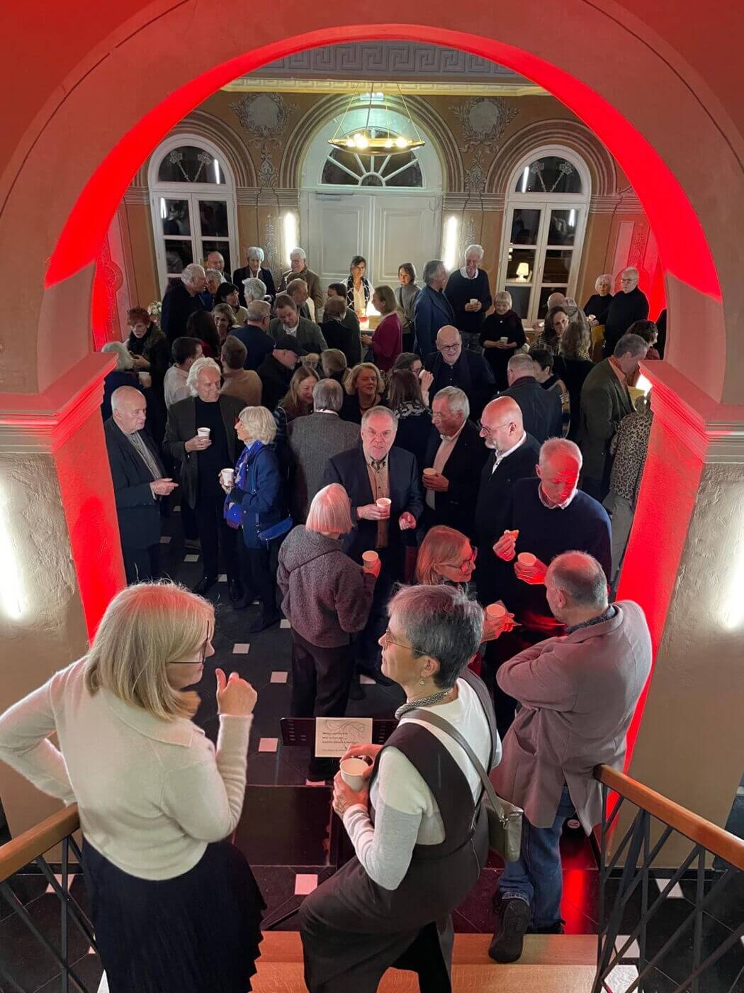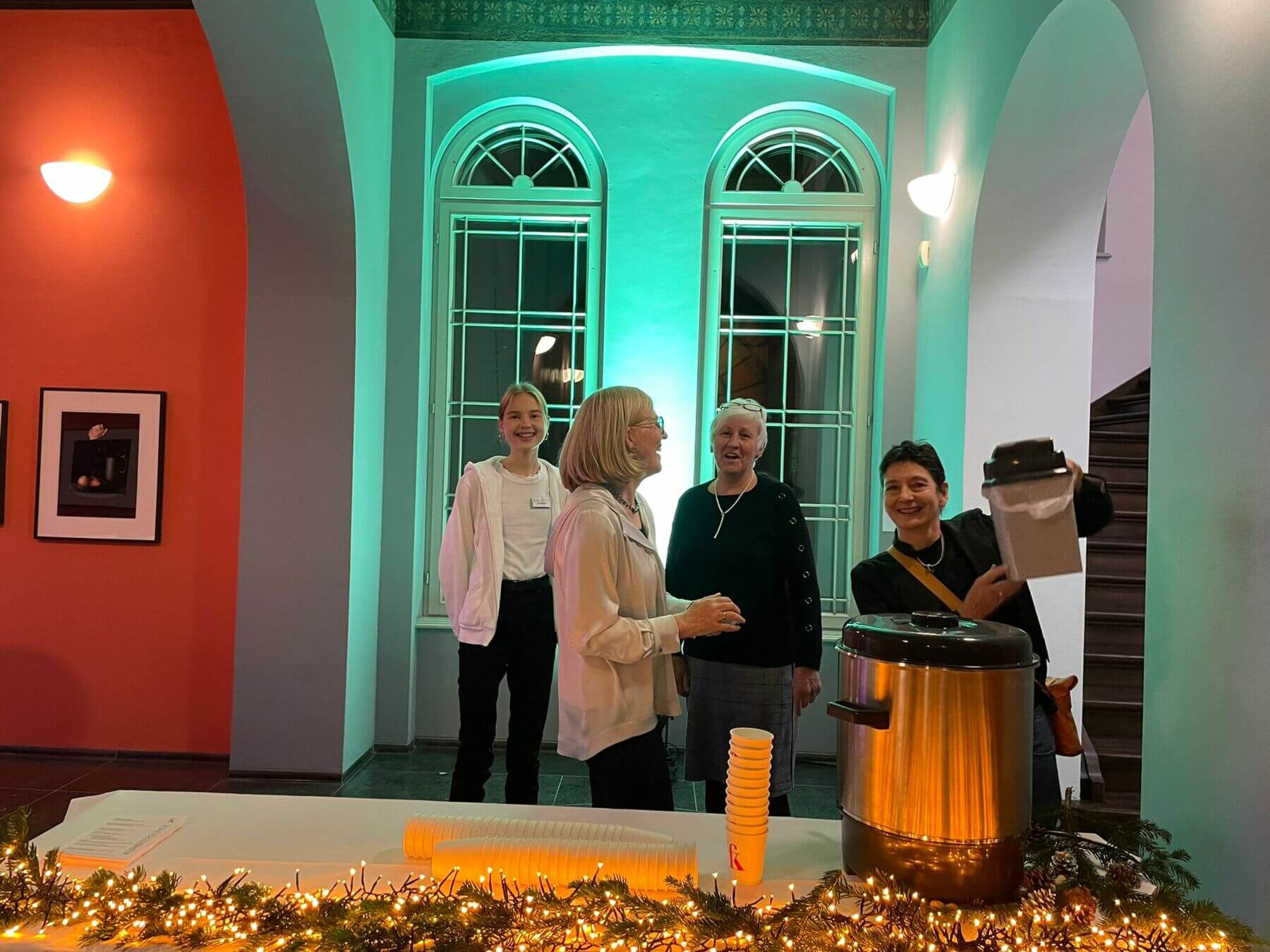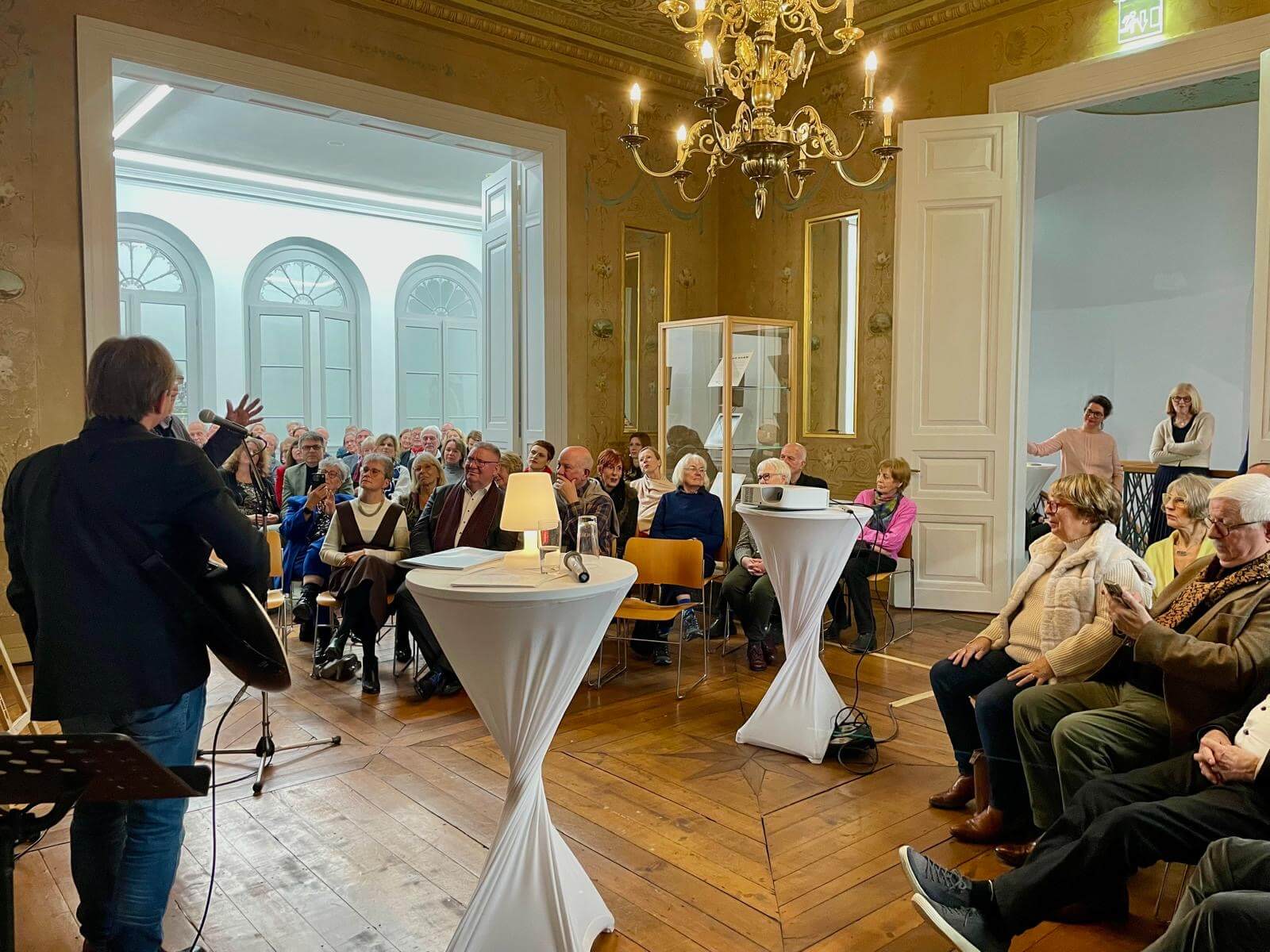 Wie jedes Jahr trafen sich die Mitglieder des Freundeskreises zur Weihnachtsfeier im Museum Kurhaus. Zur Begrüßung gab es am 5.Dezember einen Becher Glühwein in der Lounge. Anschließend moderierte Willi Röth in der Wandelhalle Gespräche mit den Museumsleitern: Ein Blick auf das vergangene und das kommende Jahr in den beiden Museen, die Bedeutung der ehrenamtlichen Mitarbeit in vielen Bereichen sowie Musikgenuss (dargeboten von Frank Mehring und Dennis Meivogel aus dem Vorstand) bildeten das Programm, dem geselliges Miteinander im Friedrich-Wilhelms-Bad folgte, vom Team des Café Moritz mit kleinen Köstlichkeiten begleitet.