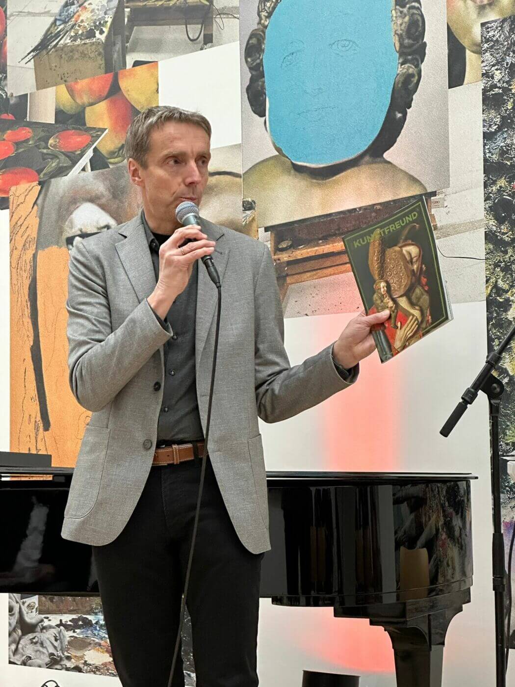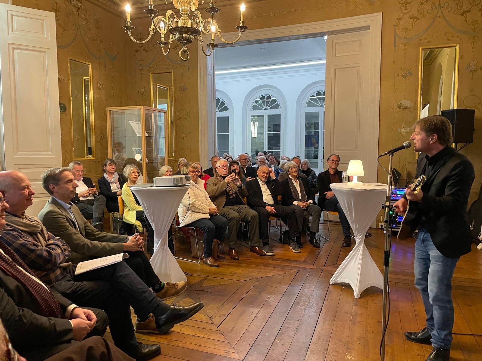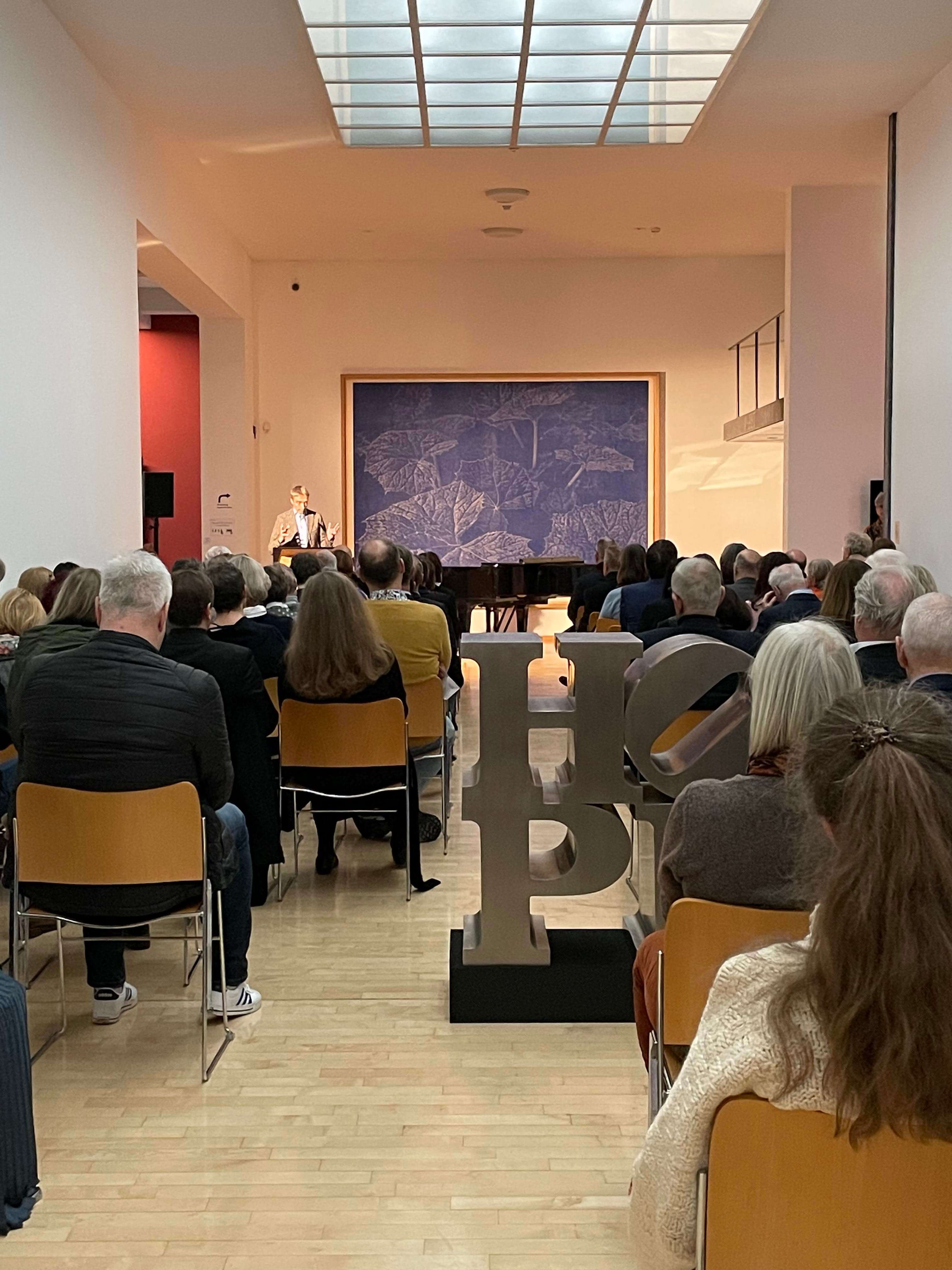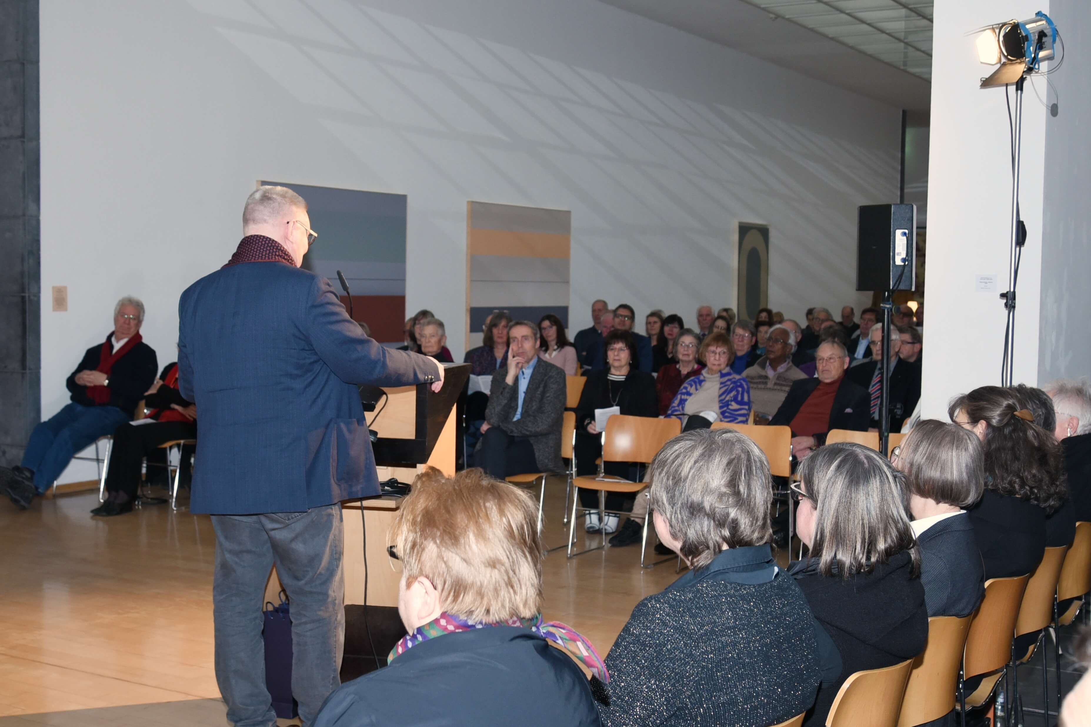 Wie jedes Jahr trafen sich die Mitglieder des Freundeskreises zur Weihnachtsfeier im Museum Kurhaus. Zur Begrüßung gab es am 5.Dezember einen Becher Glühwein in der Lounge. Anschließend moderierte Willi Röth in der Wandelhalle Gespräche mit den Museumsleitern: Ein Blick auf das vergangene und das kommende Jahr in den beiden Museen, die Bedeutung der ehrenamtlichen Mitarbeit in vielen Bereichen sowie Musikgenuss (dargeboten von Frank Mehring und Dennis Meivogel aus dem Vorstand) bildeten das Programm, dem geselliges Miteinander im Friedrich-Wilhelms-Bad folgte, vom Team des Café Moritz mit kleinen Köstlichkeiten begleitet.