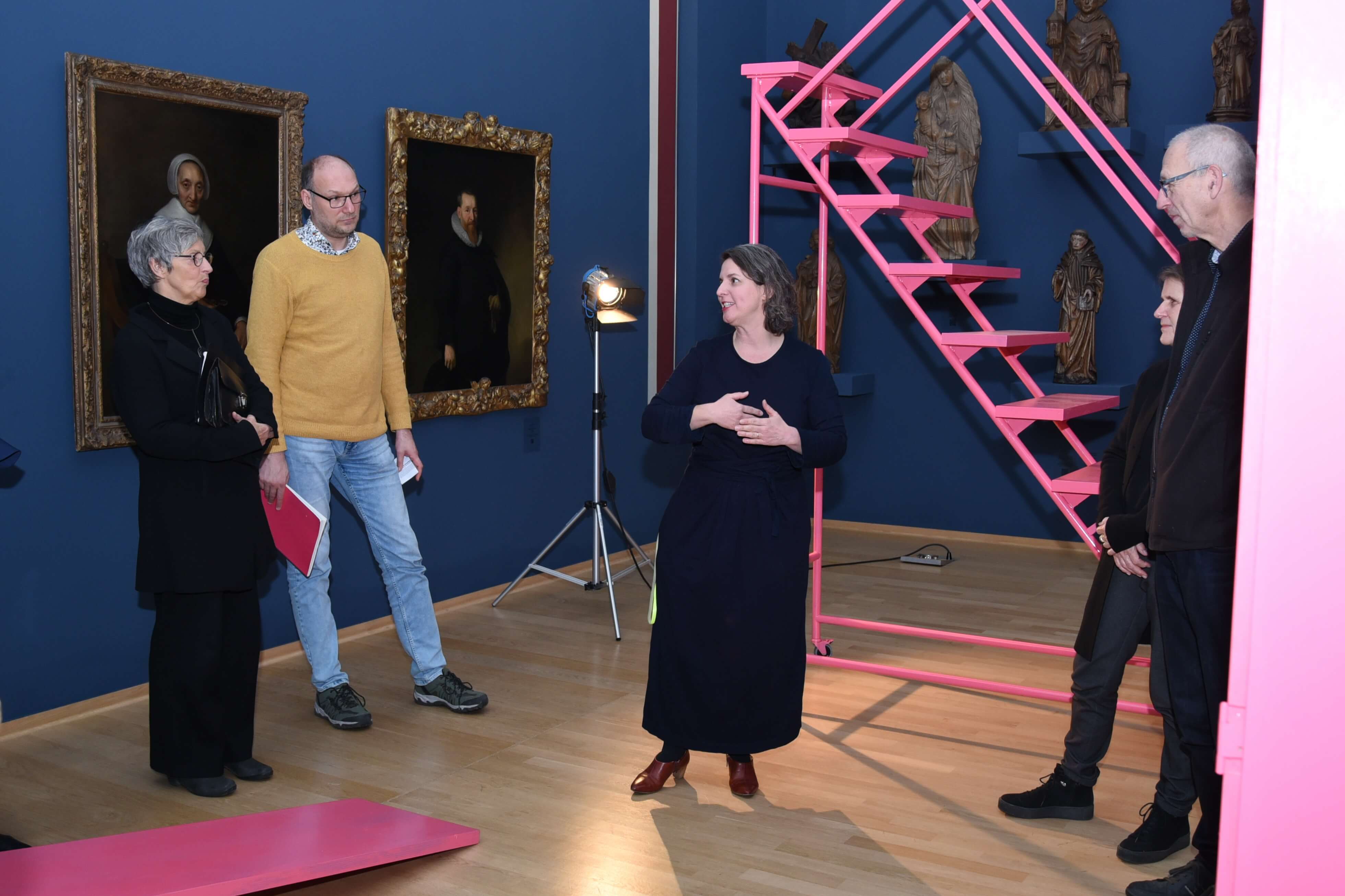 Nach dem musikalischen Vortrag der neunjährigen Pianistin Derin Ulucay (Schülerin der Musikschulen des Kreises Kleve aus der Klasse von Chiara Rivinius) setzte Susanne Figner im Katharina-von-Kleve-Saal Impulse zum Dialog des spätgotischen Skulpturenschatzes mit den Objekten von Stephen Prina.