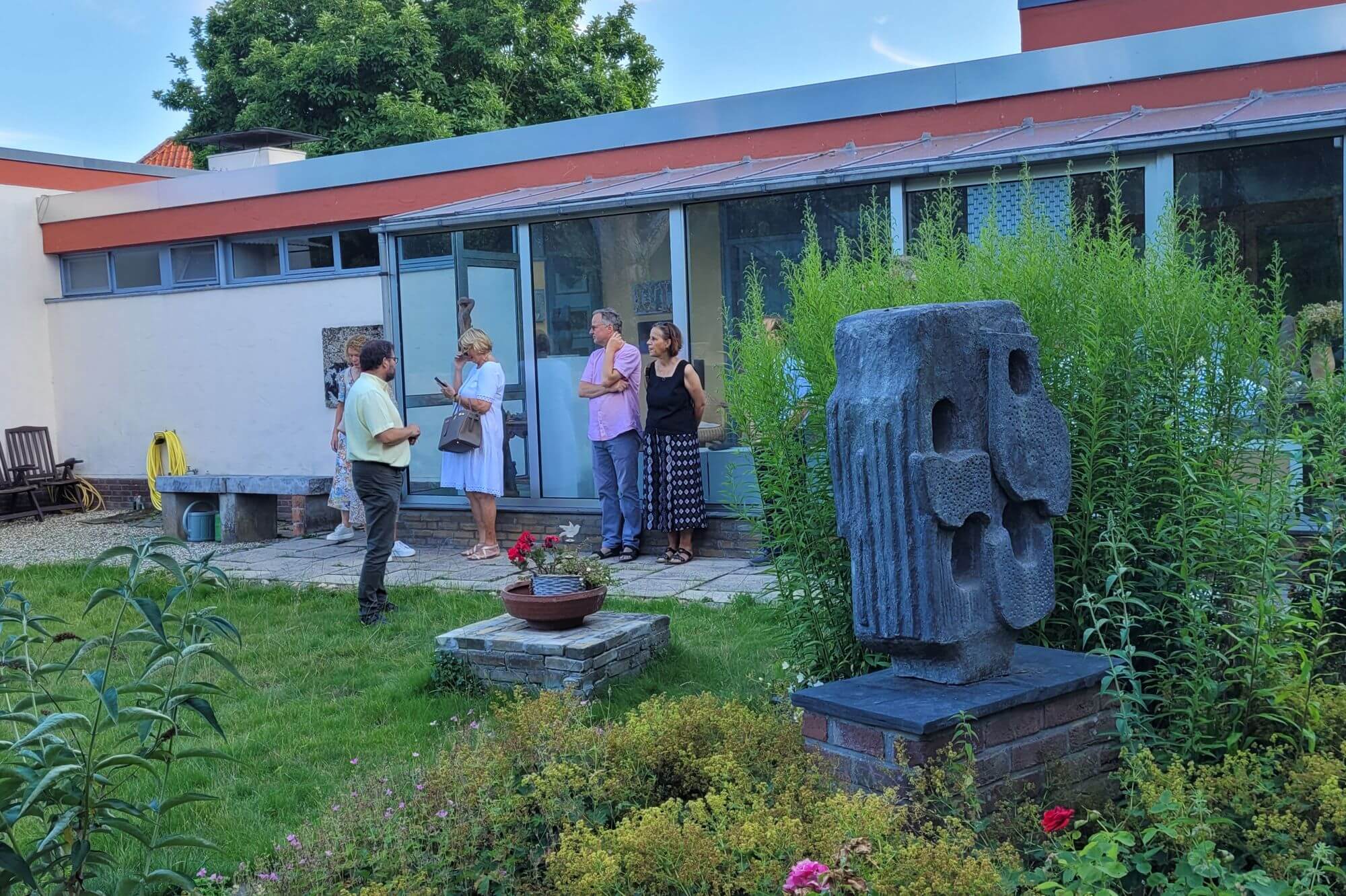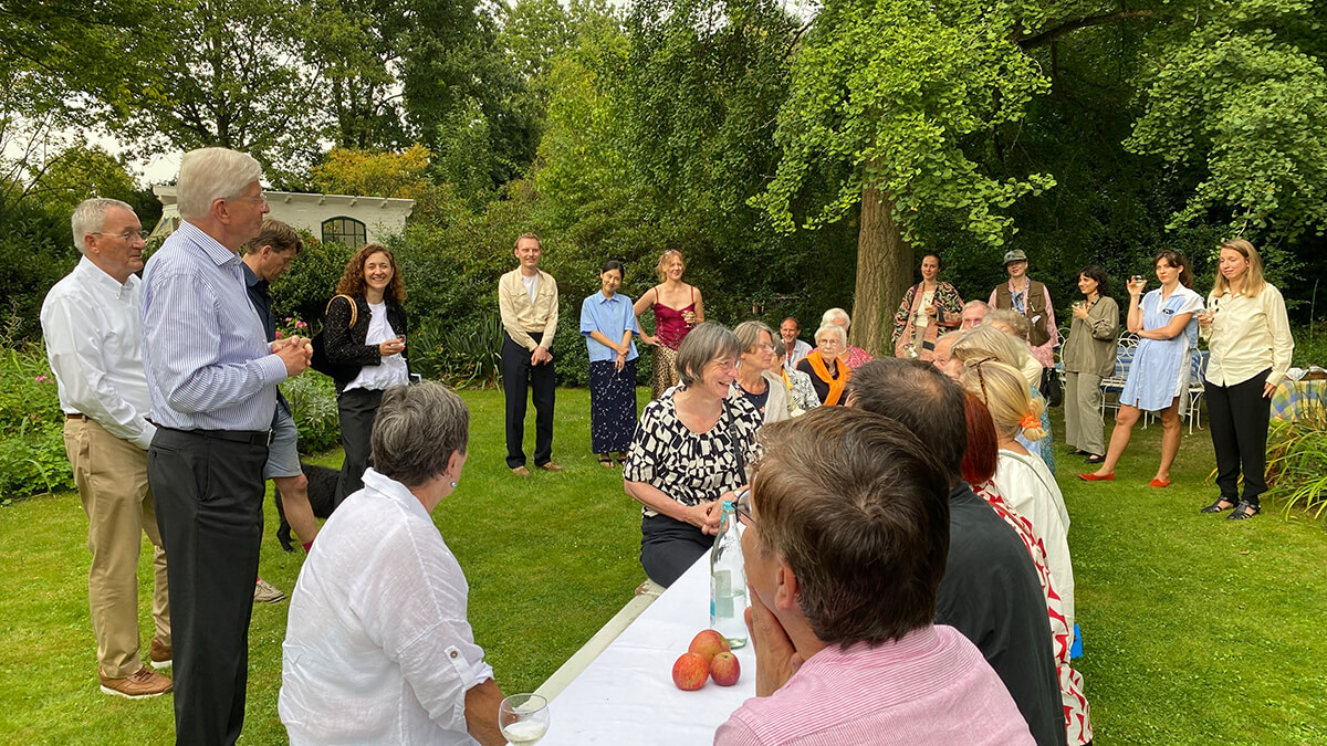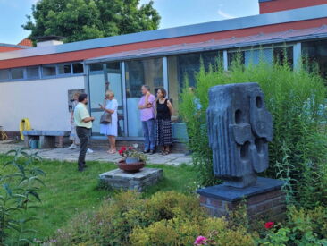 Dr. Theo Siegert erzählte von seinem Spaziergang mit Guido de Werd, aus dem sich die heutige Nutzung des Hauses der Familie Mataré entwickelte, das seit 2022 den dHCS-Stipendiat*innen des Kunstvereins für die Rheinlande und Westfalen, Düsseldorf als Atelierhaus zur Verfügung steht.