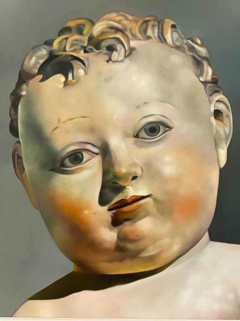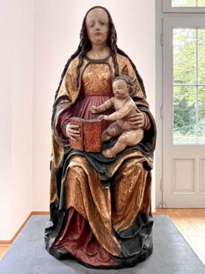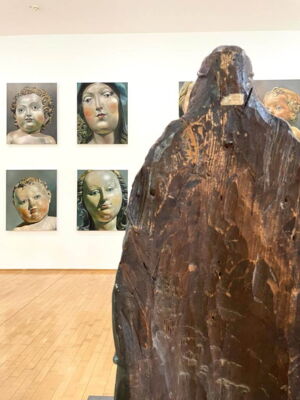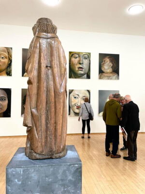 Im Museum Kurhaus Kleve und im Museum Franz Gertsch präsentiert Karin Kneffel eine neue, in Museen bislang noch nicht gezeigte Werkserie, die sie während der durch das Coronavirus bedingten Isolation der vergangenen Jahre geschaffen hat. Bis auf wenige Ausnahmen macht Karin Kneffel erstmals überhaupt das Menschenbild zum Thema dieser neuen Serie. Sie malt mittelalterliche Madonnenstatuen des 14. bis 16. Jahrhunderts mit einer besonderen farbigen Fassung, die sie vornehmlich im süd- als auch norddeutschen Raum gefunden hat. (Kuratorin Valentina Vlašić)