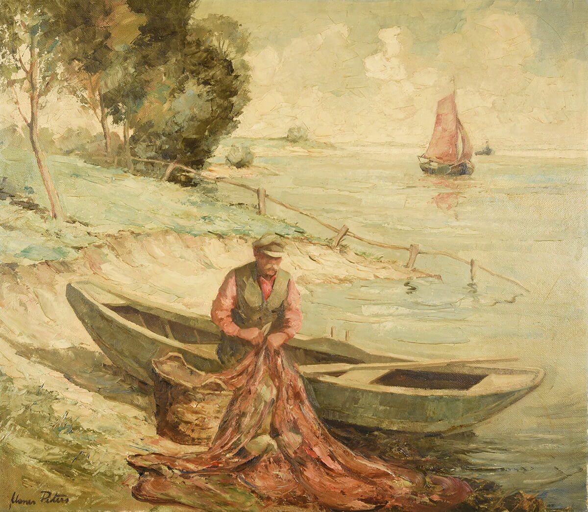 >> Mehr zu Manes Peters - Rheinfischer beim Einholen seines Netzes, um 1950 / MKK Inv.2022-08-01
