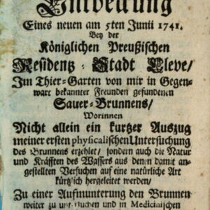 Das erste Buch beschreibt die Entdeckung der Mineralquelle durch Johannes Blanckenhorn, das zweite ist seine lateinisch geschriebene Doktorarbeit über die Klever Minerralquelle aus 1742.