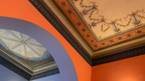 - Die Wandelhalle mit den alten Rundbogenfenstern blieb erhalten.