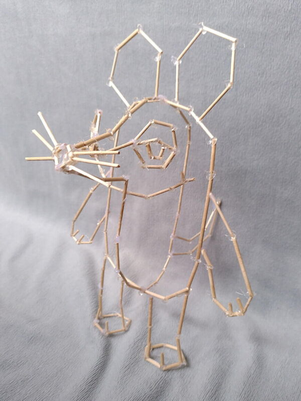 3 Dann beginnt die Arbeit: Aus Schaschlikspießen entsteht die Maus.