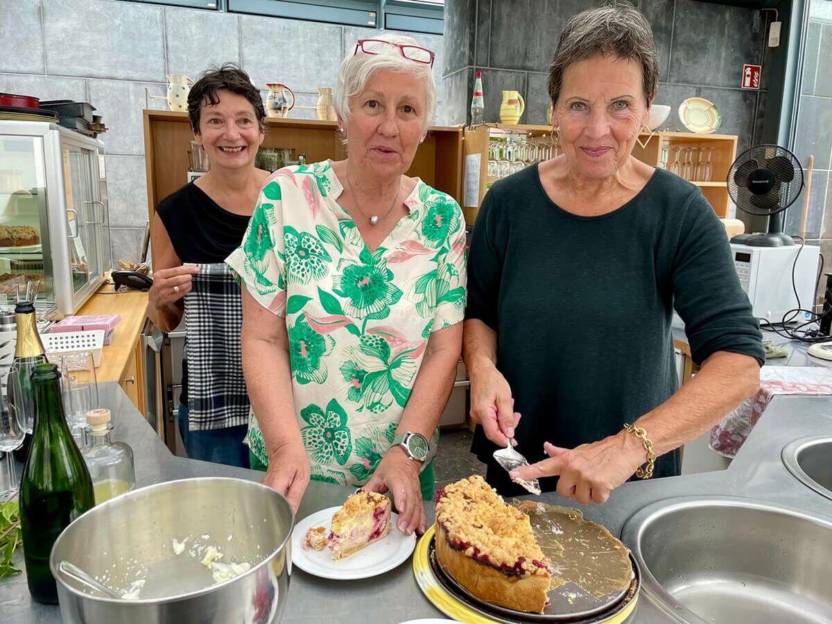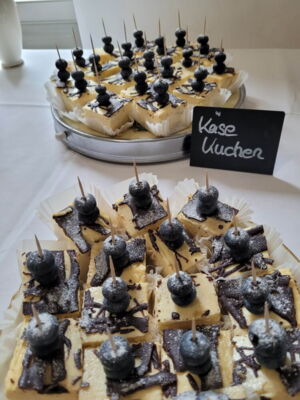 Bei uns gibt es für die Besucherinnen und Baesucher Kaffee in allen Variationen, kühle Getränke, täglich frischen, selbst gebackenen Kuchen, Suppen, Quiches...