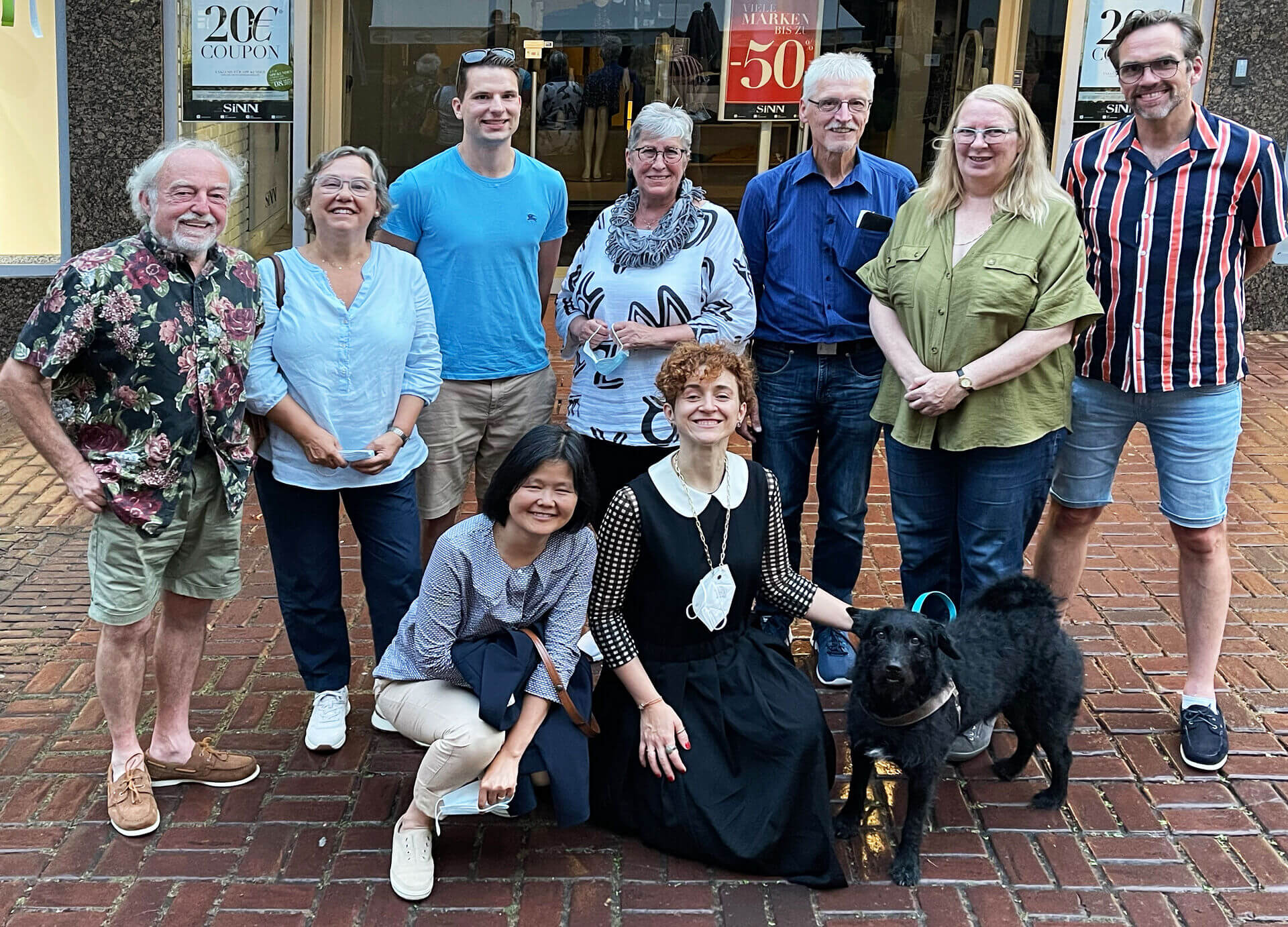Das Foto zeigt die ehrenamtlichen Mitarbeiterinnen und Mitarbeiter, die im Museum Kurhaus in Absprache mit der wissenschaftlichen Mitarbeiterin Valentina Vlašić die Sammlungsbestände inventarisieren und digitalisieren: Werner Steinecke, Carmen Gonzalez, Jonathan Mandel, Annegret Gossens, Werner Stein, Stella Hufschmidt, Thomas Bovenkerk (v.l.n.r., stehend) sowie Xing Xie und Valentina Vlašić.