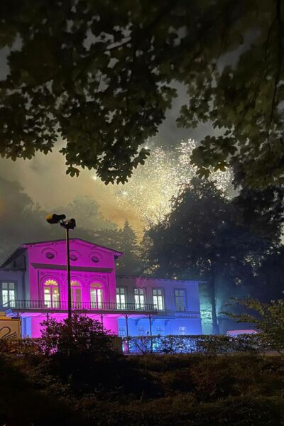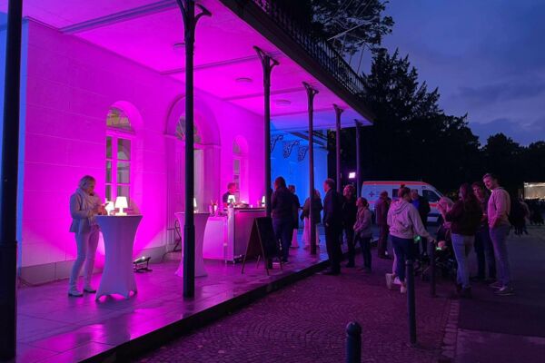 Der Tag endete mit der Sektbar vor dem blau illuminierten MKK während des Klever Lichterfestes.