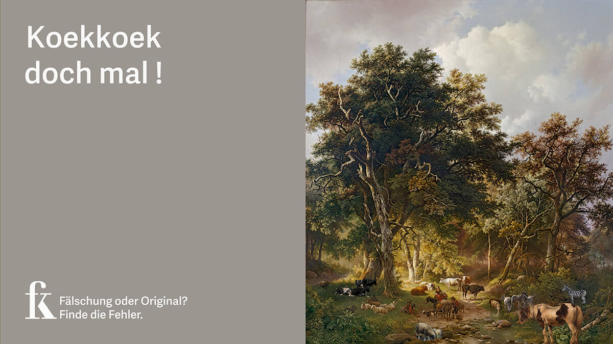 "Waldbaden" vor Koekkoeks Waldlandschaften und denen seiner Malerfreunde, um im Familien-Spiel Original und Fälschung zu unterscheiden und zu beschreiben.