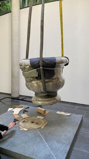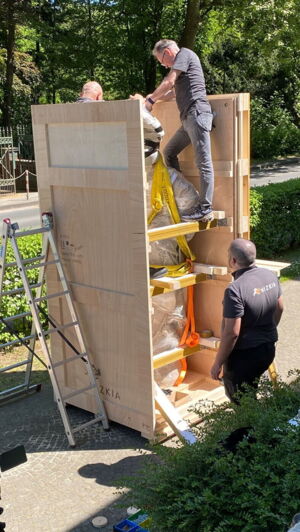 Als am 12.05.2025 die Skulptur der Pallas Athene aus dem Museum Kurhaus Kleve abgeholt wurde, war Norbert van Elten als Zuschauer dabei.