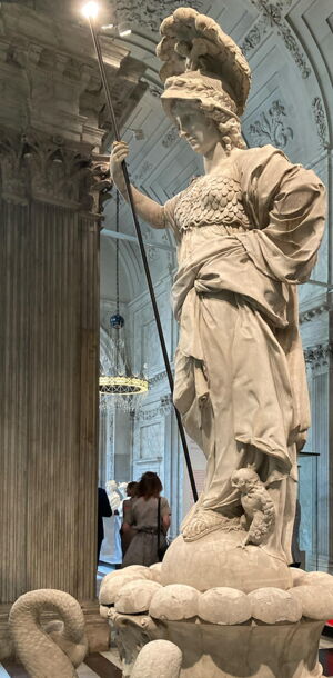 Seitdem bildet diese Skulptur der Pallas Athene oder Minerva, wie sie auch genannt wurde, einen zentralen Punkt der barocken Gartenanlagen.