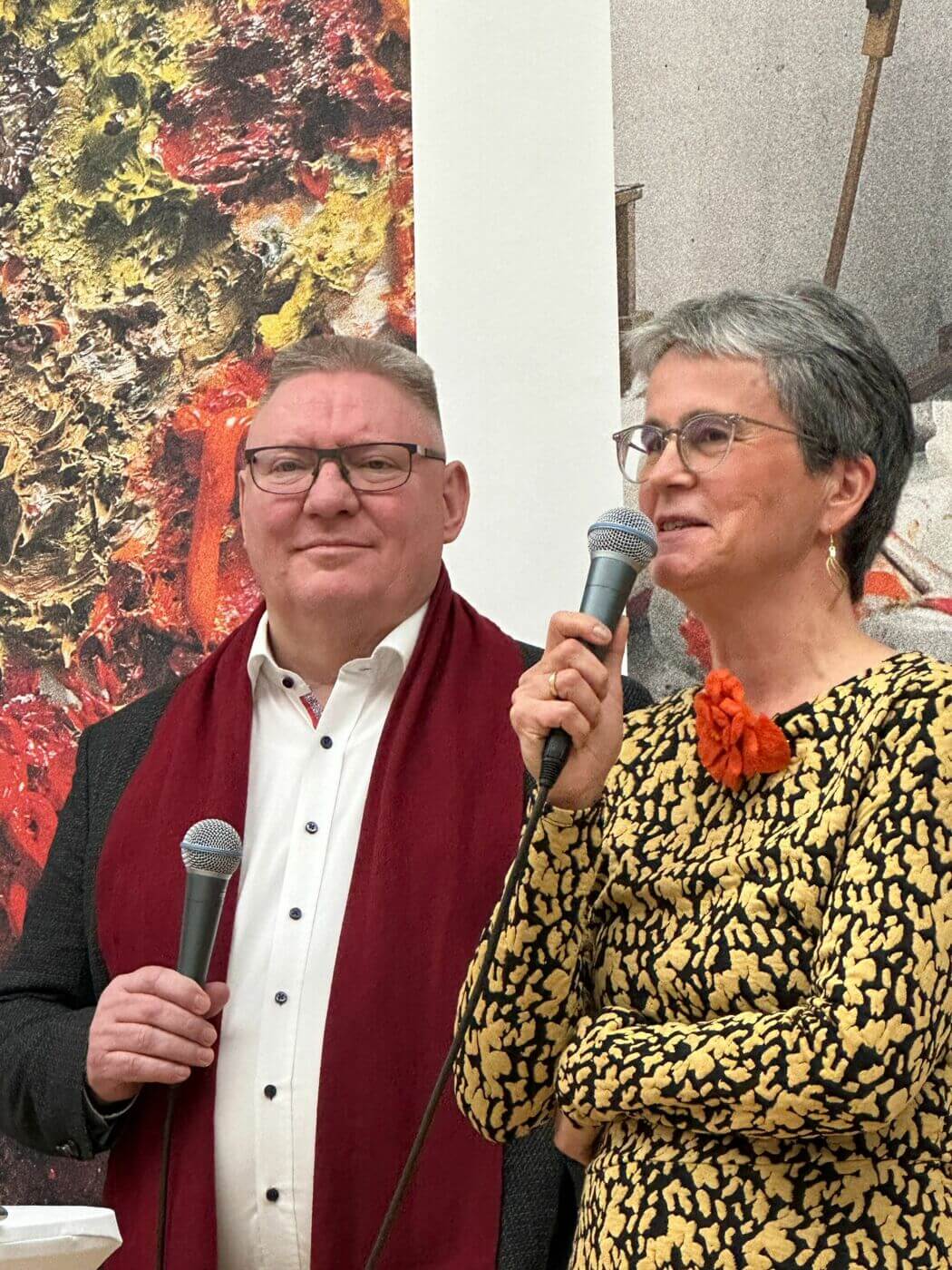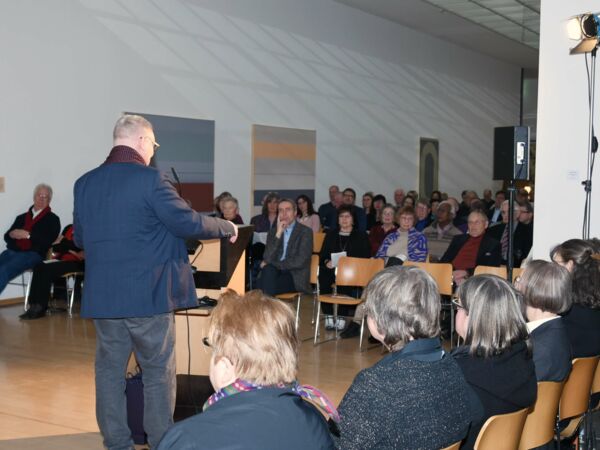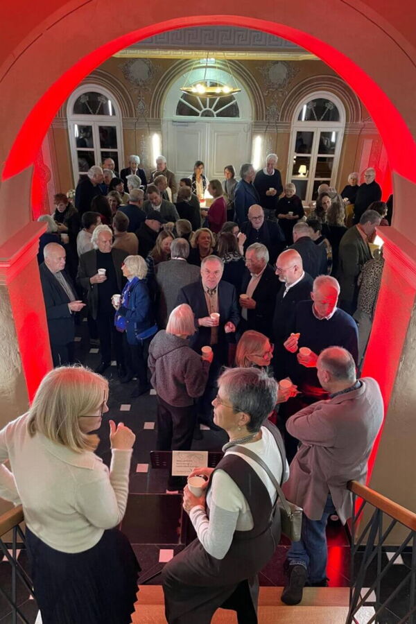 Wie jedes Jahr trafen sich die Mitglieder des Freundeskreises zur Weihnachtsfeier im Museum Kurhaus. Zur Begrüßung gab es am 5.Dezember einen Becher Glühwein in der Lounge. Anschließend moderierte Willi Röth in der Wandelhalle Gespräche mit den Museumsleitern: Ein Blick auf das vergangene und das kommende Jahr in den beiden Museen, die Bedeutung der ehrenamtlichen Mitarbeit in vielen Bereichen sowie Musikgenuss (dargeboten von Frank Mehring und Dennis Meivogel aus dem Vorstand) bildeten das Programm, dem geselliges Miteinander im Friedrich-Wilhelms-Bad folgte, vom Team des Café Moritz mit kleinen Köstlichkeiten begleitet.