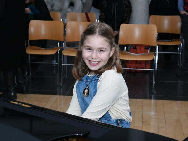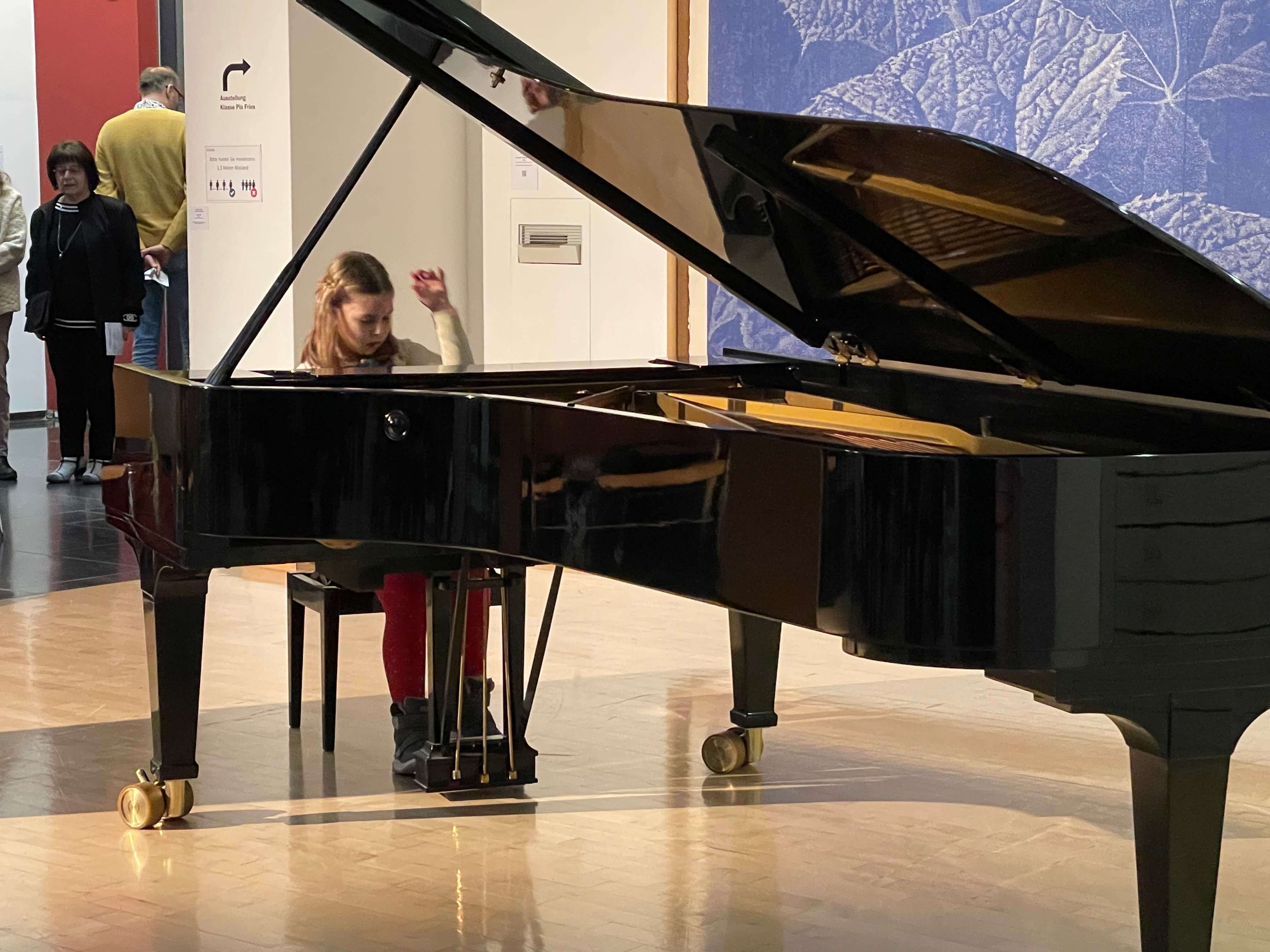 Nach dem musikalischen Vortrag der neunjährigen Pianistin Derin Ulucay (Schülerin der Musikschulen des Kreises Kleve aus der Klasse von Chiara Rivinius) setzte Susanne Figner im Katharina-von-Kleve-Saal Impulse zum Dialog des spätgotischen Skulpturenschatzes mit den Objekten von Stephen Prina.