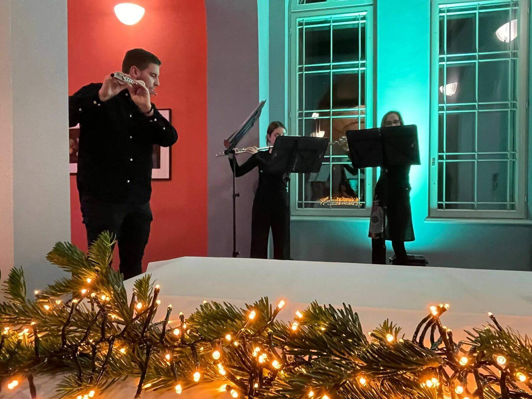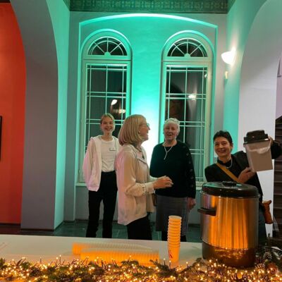 Wie jedes Jahr trafen sich die Mitglieder des Freundeskreises zur Weihnachtsfeier, die - wegen der Umbauarbeiten im B.C. Koekkoek-Haus - nochmals im Museum Kurhaus stattfand. Ein Blick auf das vergangene und das kommende Jahr in den beiden Museen, die Bedeutung der ehrenamtlichen Mitarbeit in vielen Bereichen sowie Musikgenuss (dargeboten von Musikerinnen und Musikern der Musikschulen des Kreises Kleve) bildeten den Auftakt, dem geselliges Miteinander in der Lounge und in der Wunderkammer folgten.