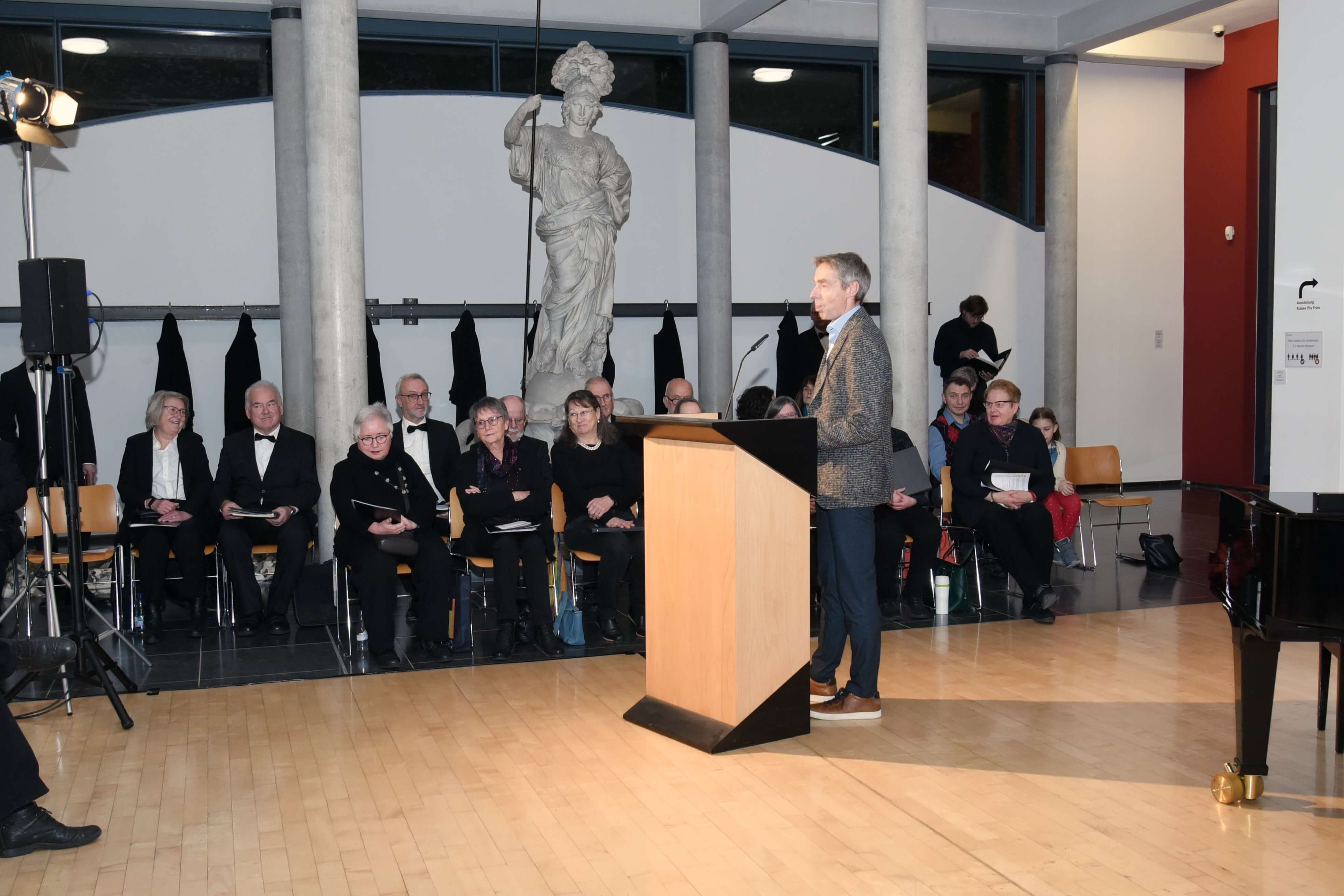 In der Pinakothek begrüßten Wilfried Röth und Harald Kunde die Mitglieder des Freudeskreises, musikalisch eingestimmt in die vorweihnachtliche Zeit durch den Raum füllenden Chorgesang.